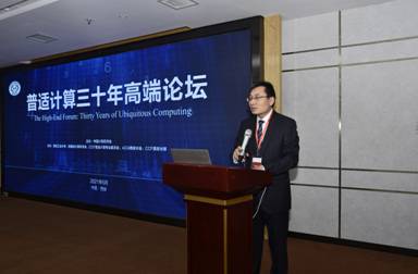 随后戴国忠研究员带来题为《普适计算与人机交互》的特邀报告,报告阐释了普适计算和人机交互的关联与发展,给出了普适计算就是计算资源作用于人和环境的认识理解,介绍了自然界面、上下文感知、自动捕捉访问等普适环境下的新型交互技术,并对未来新时代、新范式、新应用进行了畅想。