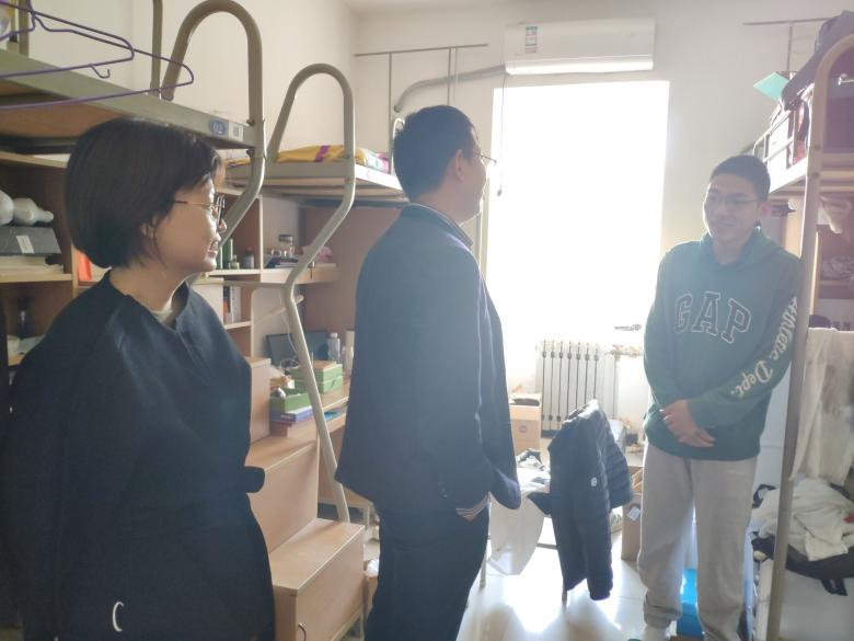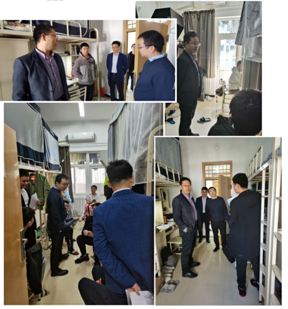 党委副书记万海东,本科辅导员沈博、张营、梁韵基、刘佳琪、梁国强、刘思聪、杨佳琪、高云,研究生辅导员齐召帅、曹香以及学生干部一起走进云天苑、海天苑、星天苑学生宿舍。
