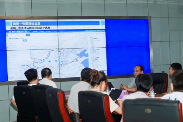 团委书记靳宇琪及实践队成员与黄委信息中心开展座谈会。黄委信息中心副主任赵嵬介绍单位情况,交流数字孪生底板建设工作。这次交流对于促进双方进一步深入合作和大学生创新成果转化都具有重要意义。