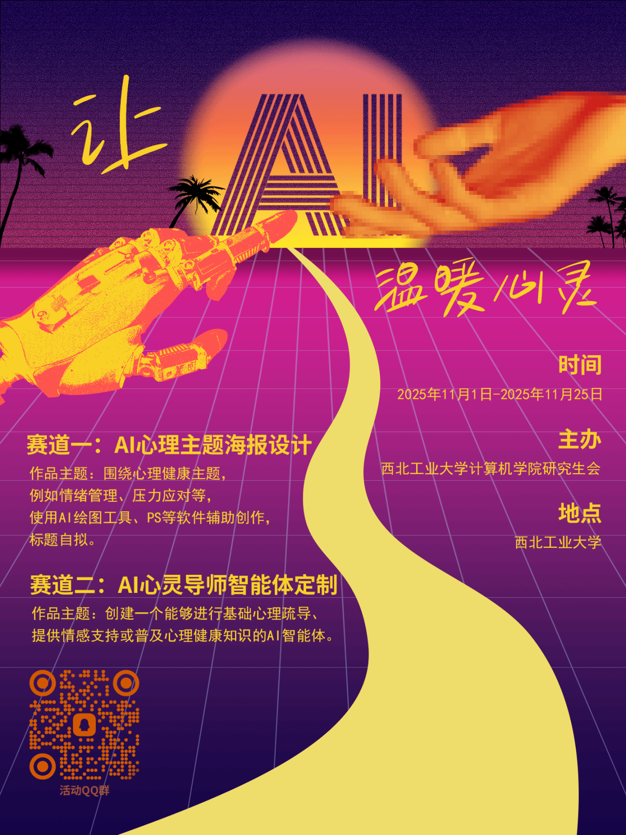 这次我们带着“AI+心理”的超酷玩法,准备了两个宝藏赛道,不管你是爱画画的创意达人,还是想玩转 AI 的探索家,都能在这里找到属于你的舞台!快往下看,解锁参赛攻略吧~
