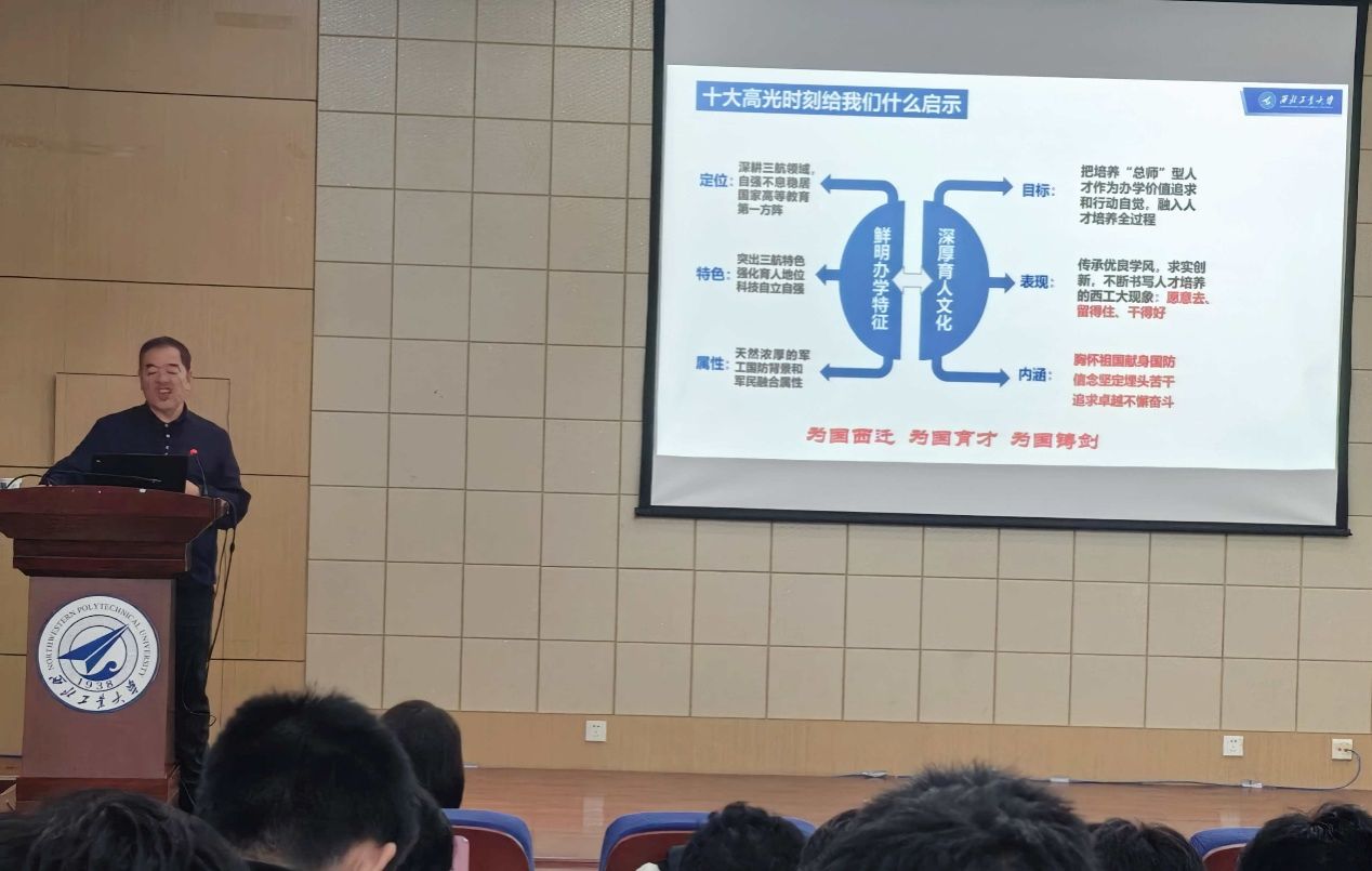 现象”,再到聚焦“总师型”人才培养的育人实践——每一段历程都将育人内核与校史校情深度交融。生动的讲述让在座各位同学对总师育人文化的历史和文化逻辑有了更加深刻的理解。