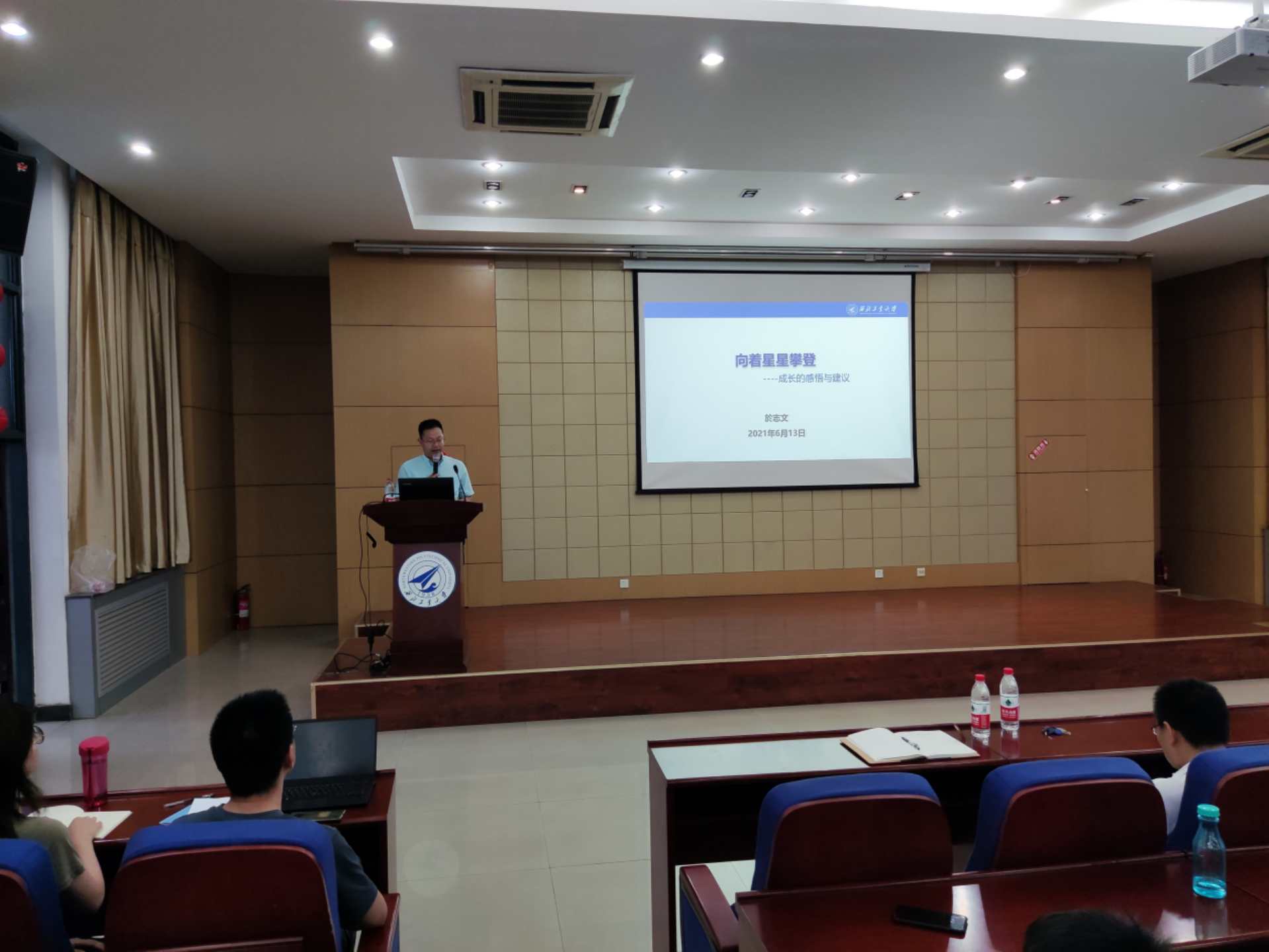 1996级学长於志文教授以“向着星星攀登”为题为同学们带来一场精彩报告,近200名博彩社区