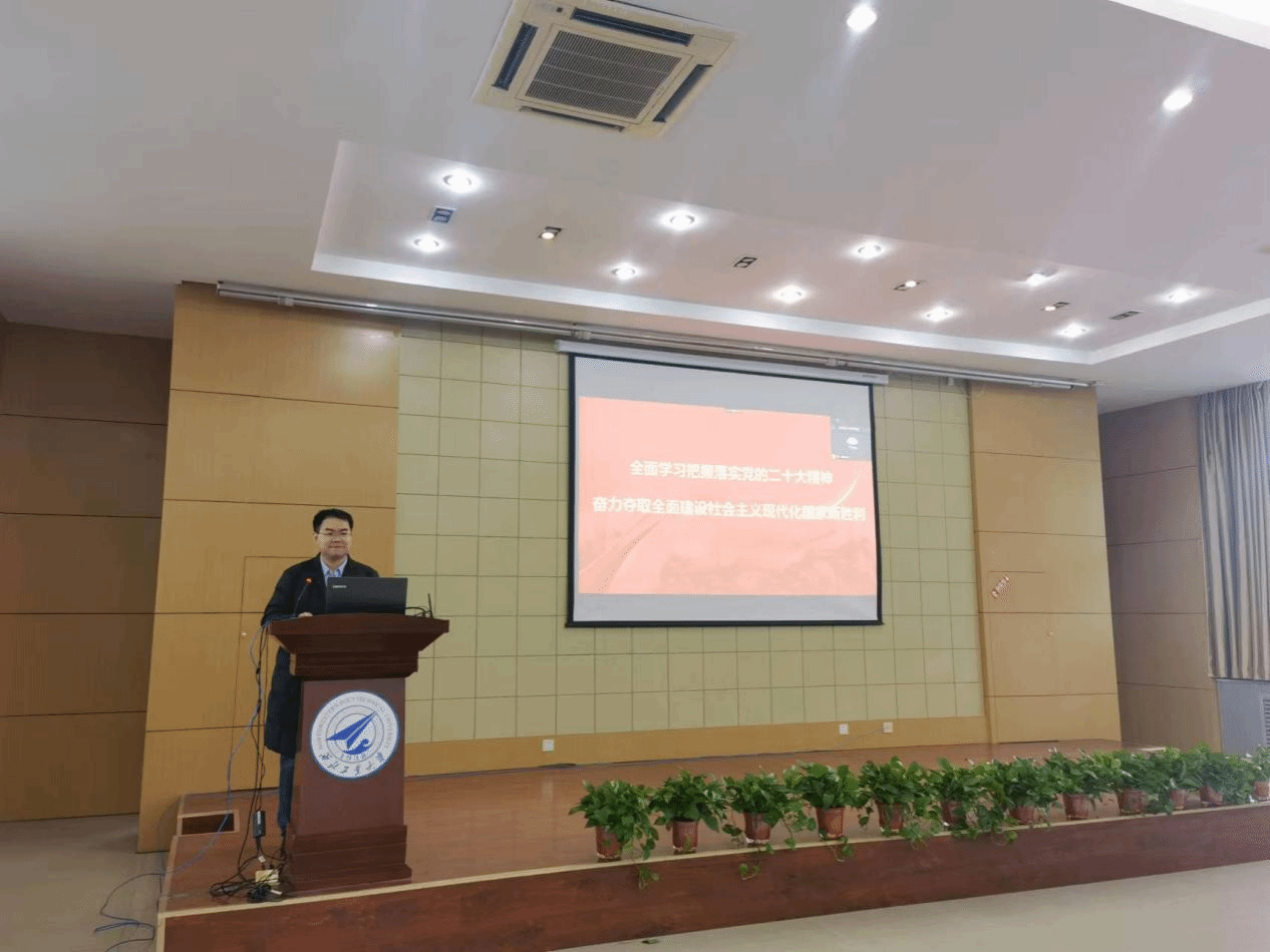党的二十大擘画了以中国式现代化推进中华民族伟大复兴的宏伟蓝图。校青年宣讲团副团长张昊以《从“两个结合”看“中国式现代化”》为题,详细阐述“两个结合”和“中国式现代化”内容,让大家深刻认识到只有把马克思主义基本原理同中国具体实际相结合、同中华优秀传统文化相结合,才能充分发挥马克思主义的实践伟力,走好具有中国特色的中国式现代化之路。