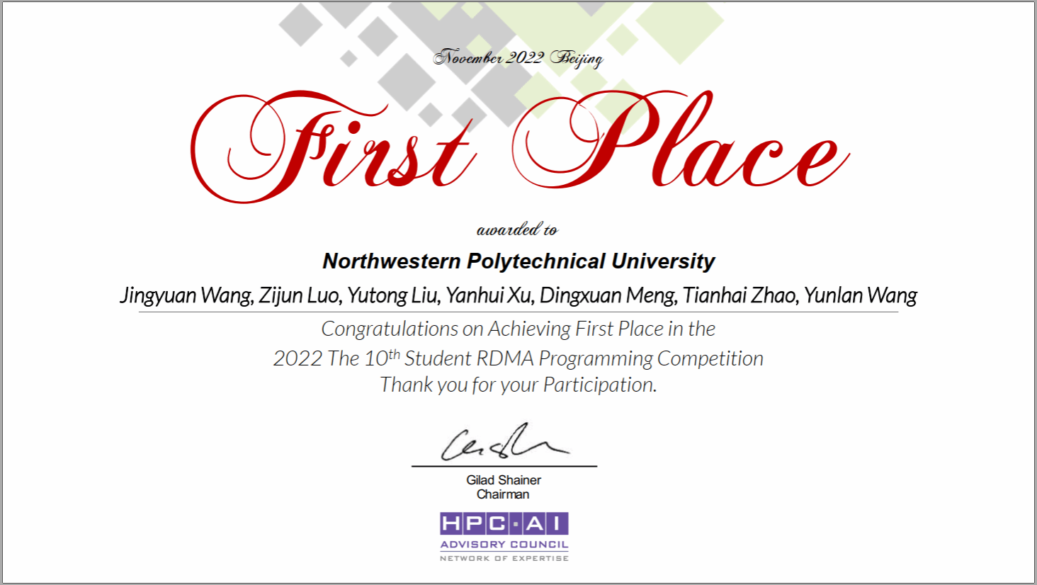 参赛队伍凭借创新的想法,杰出的代码实现和优化达到了接近100%的计算和通信重叠,在通信性能上得到了最高分,并在答辩过程中展现了超强实力,最终获得本次竞赛冠军。