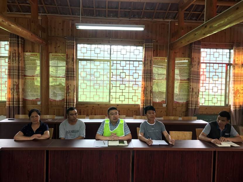 村第一书记方原首先对西北工业大学赴融水“互联网+”实践队一行的到来表示欢迎,并详细介绍了江竹村的扶贫工作情况。方书记以“给钱给物不如给个好支部”为切入点,介绍了江竹村党总支部“三个结合、三个建设”的建设思路。江竹村扶贫工作坚持“打基础、谋长远、务时效”的工作思路,通过加强党员教育平台建设、加强支部共建及任用致富带头人担任村干部等措施,以党建促发展,实现江竹村脱贫致富。通过扶贫与扶智、扶志相结合,大力发展“四种两养”产业,实现精准脱贫。此外,方书记还简要介绍了近年来江竹村基础建设情况。