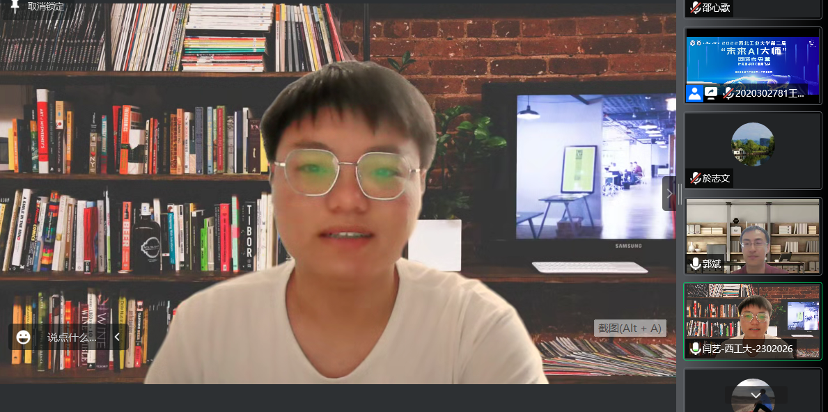 最后,学生代表闫艺进行发言,他在上一届未来AI大师夏令营活动作为一名志愿者参与其中,这次怀着对人工智能学习的憧憬,以营员的身份又来到这里。他表示希望能够通过本次营会助其推开AI世界的大门,去深入领会这个领域的魅力,去探寻这个世界所蕴含的无限可能。