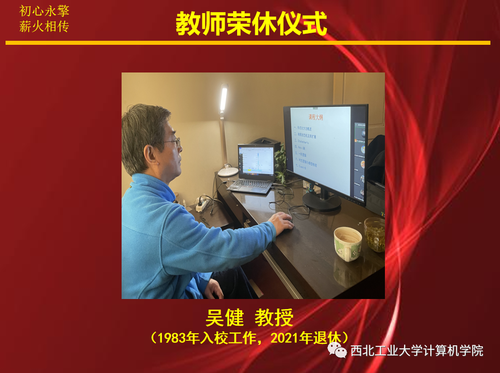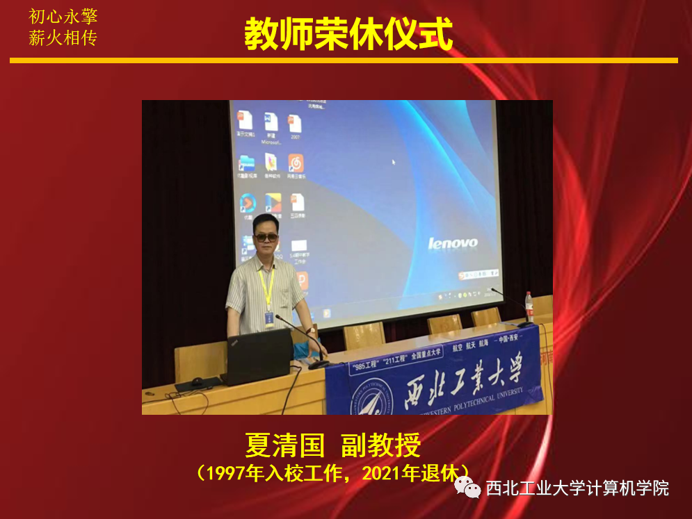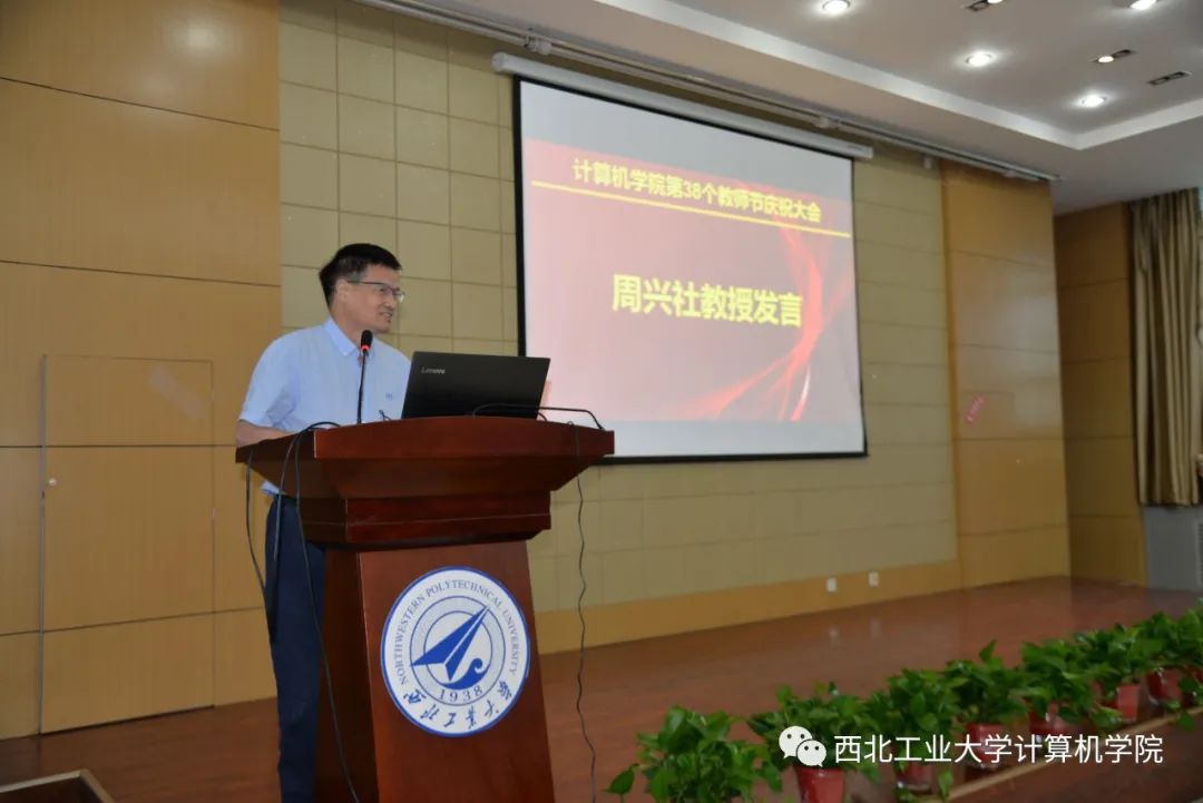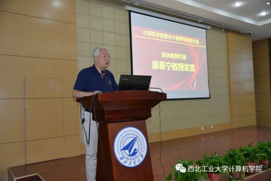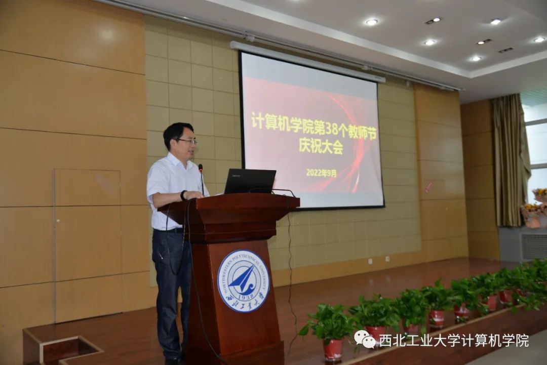 近年来在学科建设、师资队伍建设、科研、党建等方面均取得了喜人的成绩,综合实力、影响力不断提升,这些都离不开老教师的辛苦付出,同时也欢迎新教师赓续计算机人血脉,再创辉煌。他还分享了杨志义老师关心学生的感人故事,强调好老师对学生的影响,鼓励教师不忘初心、牢记使命,落实好立德树人根本任务。