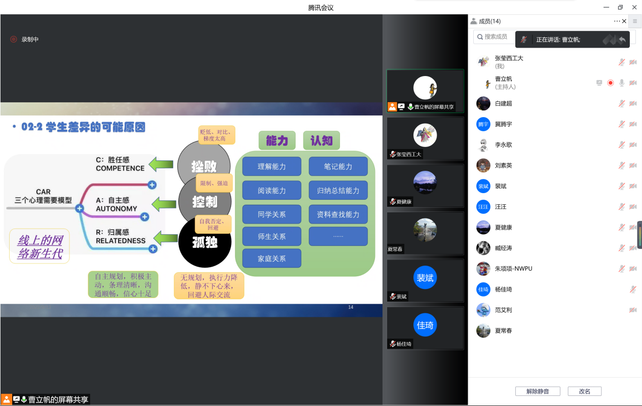 裴斌教授作《全过程精准画像、全方位整合资源、全覆盖帮扶提升》专题分享。裴斌老师强调了坚持为党育人、为国育才的初心使命,介绍了“以学生为中心、润物细无声”的班级育人理念,提出了贯穿班级管理始终的“三航筑梦、促学笃行、强基固本、创新赋能、塑造价值”思想,
