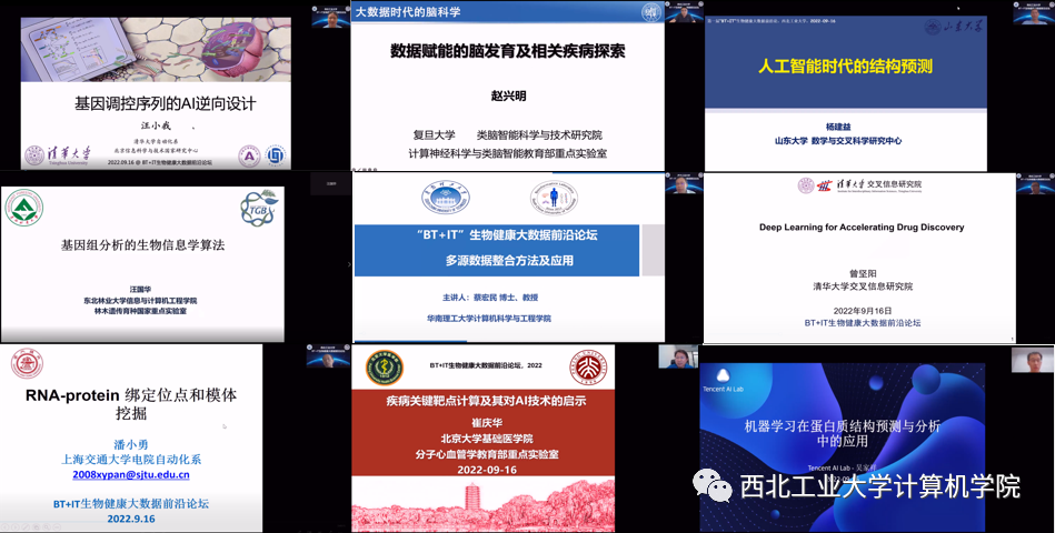 本次论坛分为上午、下午两场,多位国家杰出青年基金获得者及优秀青年学者给与会学者带来多场精彩纷呈的BT+IT生物健康大数据相关的学术报告,包括清华大学汪小我教授、复旦大学赵兴明教授、山东大学杨建益教授、哈尔滨工业大学汪国华教授、华南理工大学蔡宏民教授、上海交通大学潘小勇教授、北京大学崔庆华教授和腾讯公司吴家祥博士。报告涵盖了BT- IT领域2022年的最新研究进展、创新性思考和前沿性突破。