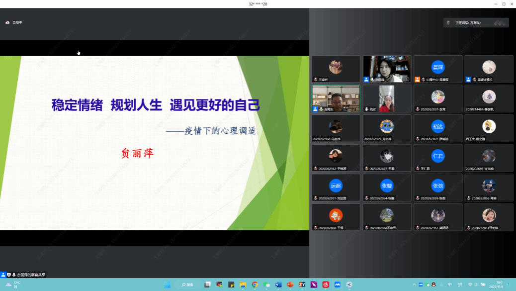 特邀请贠老师给大家带来心理健康专题报告,希望以此为契机,帮助大家提升调适心理状态的能力,遇见更好自己。