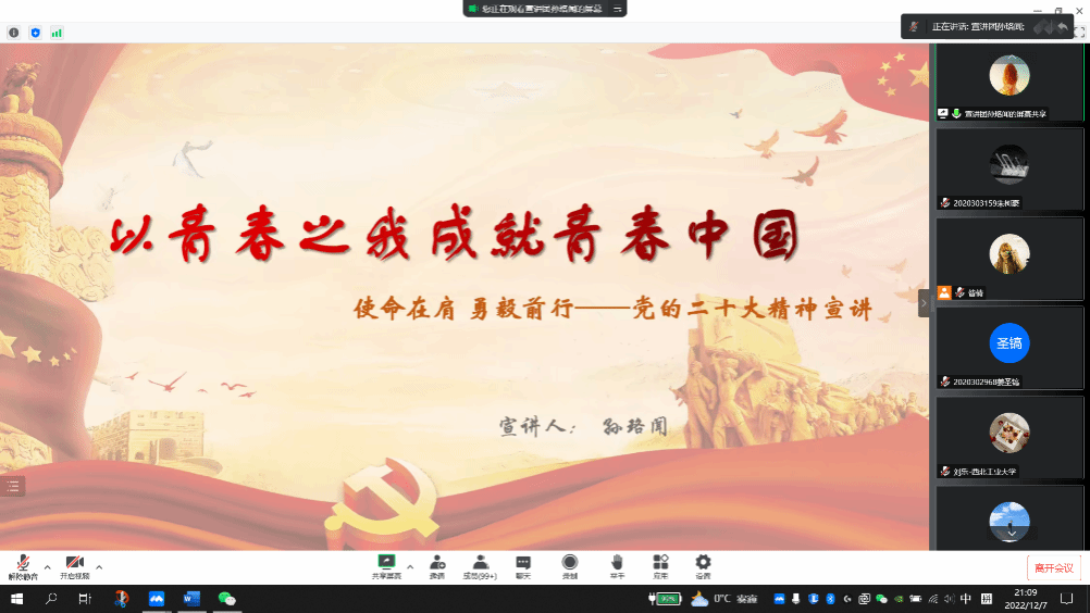 青春心向党,百年新征程。为进一步深入宣传贯彻党的二十大精神,不断增强青年团员们的凝聚力和向心力,以奋斗之我践行“请党放心,强国有我”的青春宣言。12月7日晚,博彩社区