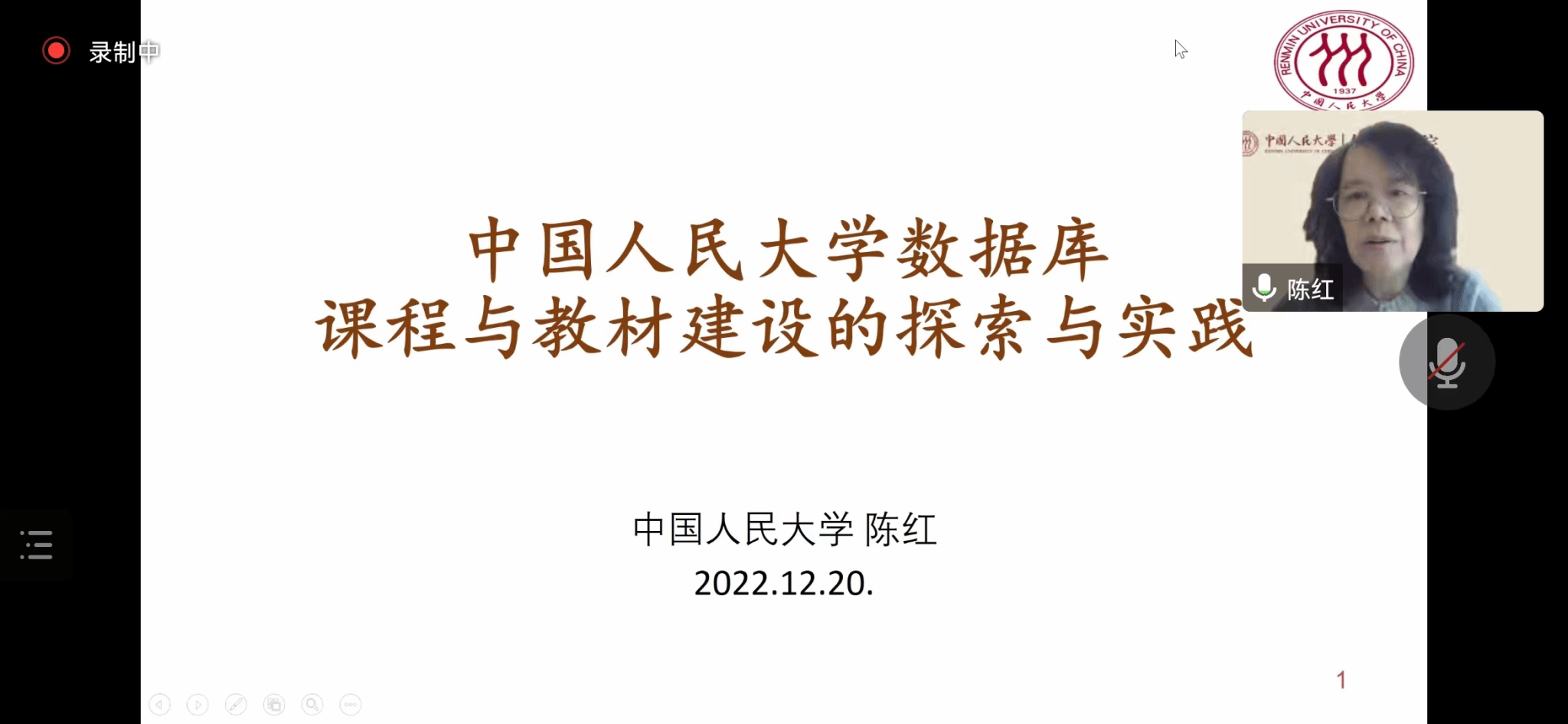 陈红做题为《中国人民大学数据库课程与教材建设的探索与实践》的报告。分享了其所在团队40多年来在数据库课程教学及教材建设过程取得的经验。该团队围绕国家战略和学科发展等问题开展了广泛的国内外调研,论述开展“数据库系统”教学的重要性,以及如何融合MOOC线上课堂和数据库内核实验平台来进行教学改革创新。最后她还介绍了团队依托101计划进行“数据库系统”教材建设所取得的最新进展。