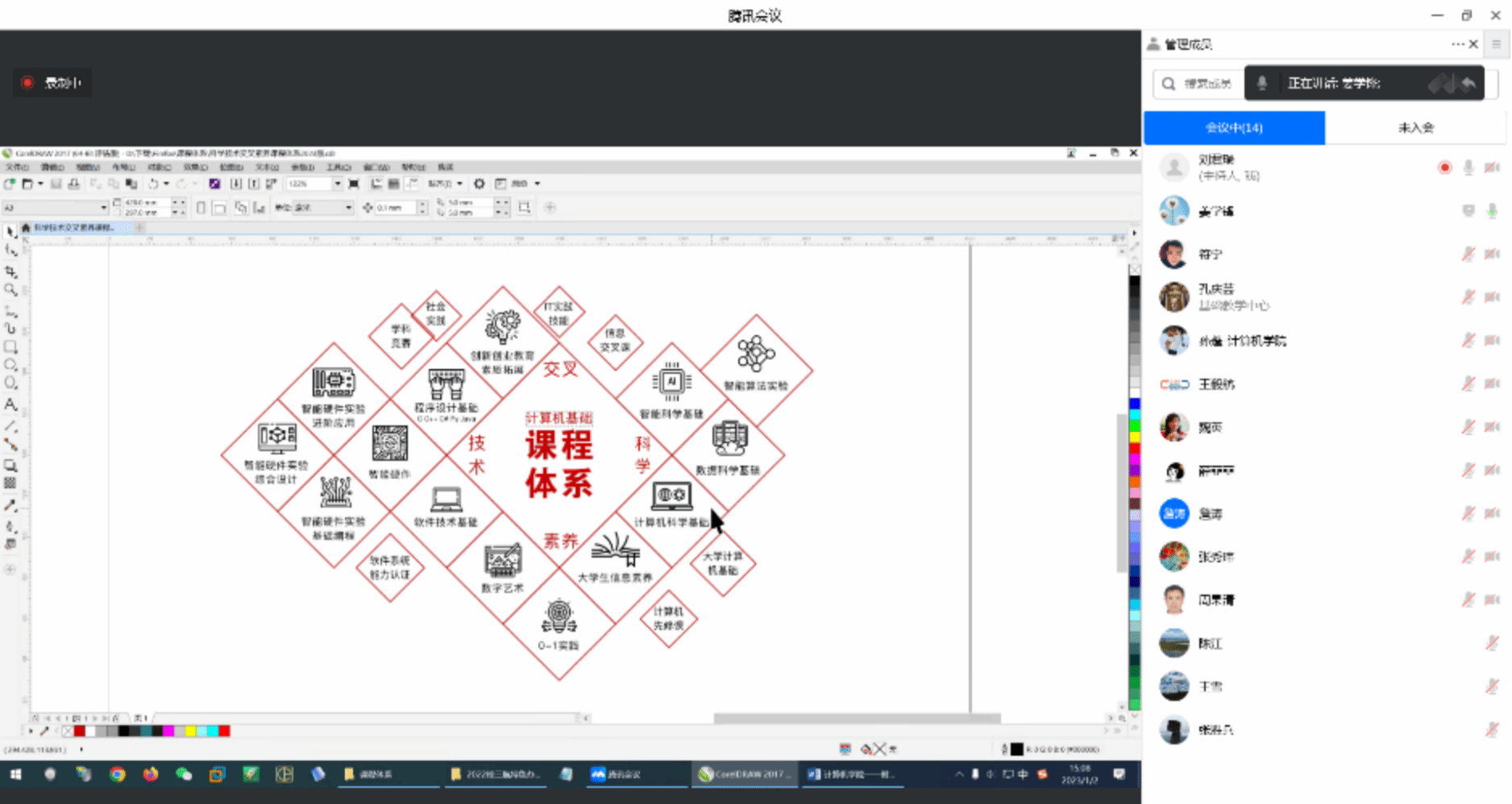 计算机基础教学改革进程,计算机基础教学与实验中心于2023年1月3日下午召开了计算机基础教学课程体系研讨会。会议采用线上形式举行,参会人员为计算机基础课程负责人及骨干老师。