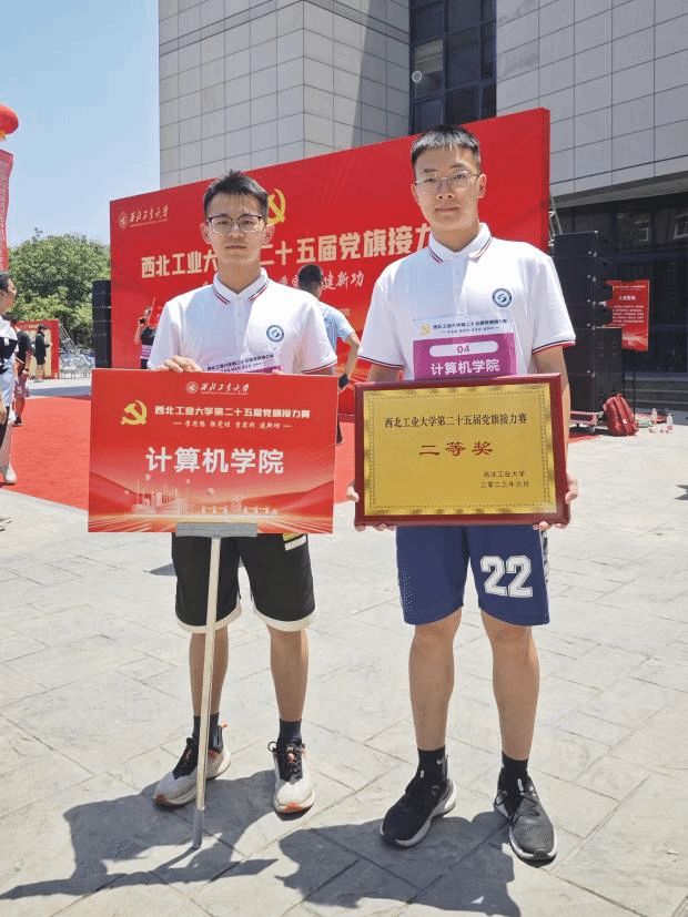 代表队传递着党旗接力棒冲刺向前,队员们奋力奔跑、仔细答题、细致游戏、紧密配合。最终取得二等奖的好成绩。