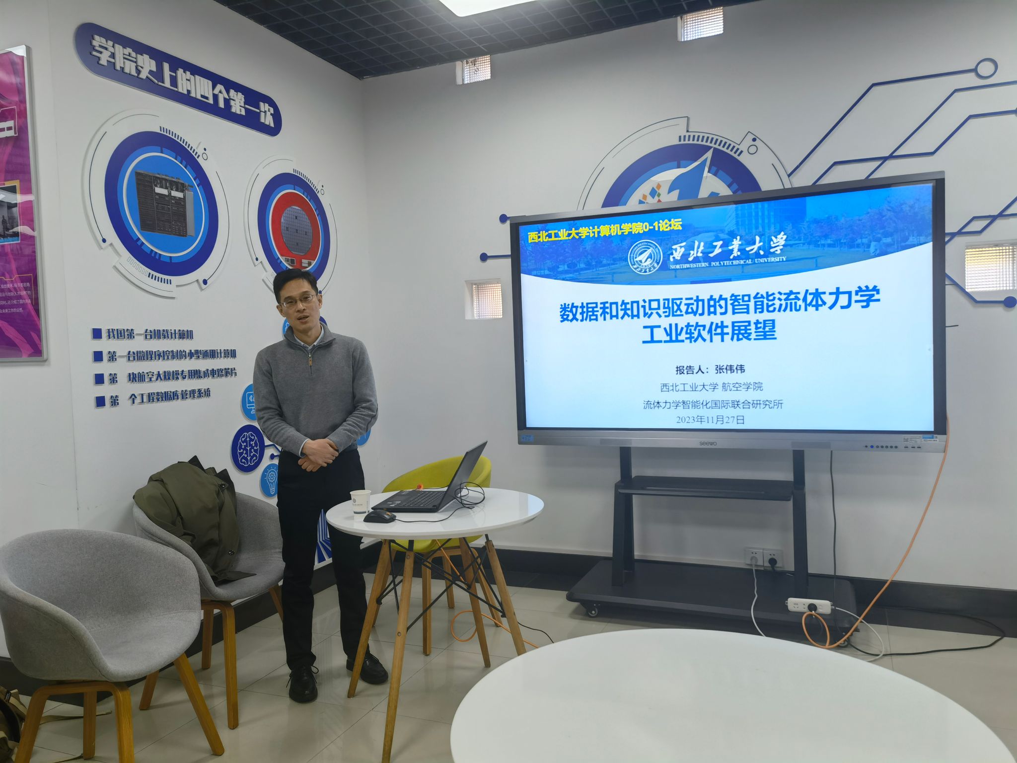 张伟伟教授作学术报告,活动由尚学群院长主持。
