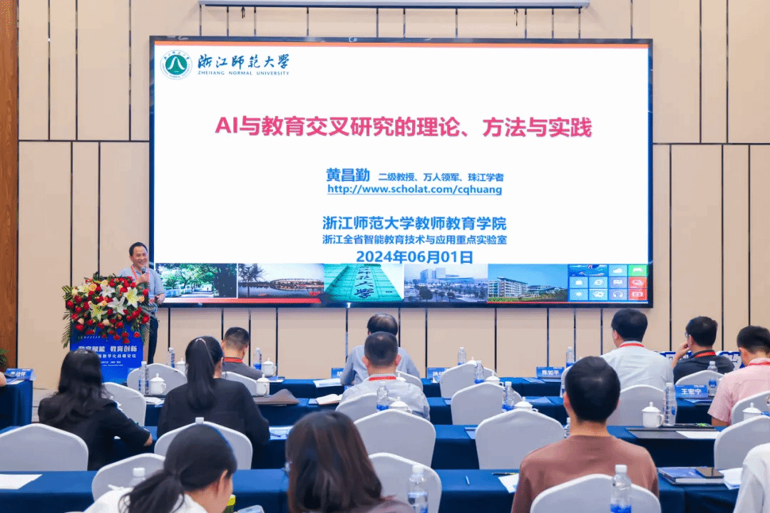 黄昌勤以《AI与教育交叉研究的理论、方法与实践》为题,介绍了教学中人际互动实现知识建构的学习认知机制与演化规律的研究背景,探讨了多学科交叉性技术方案和研究验证应用方案。