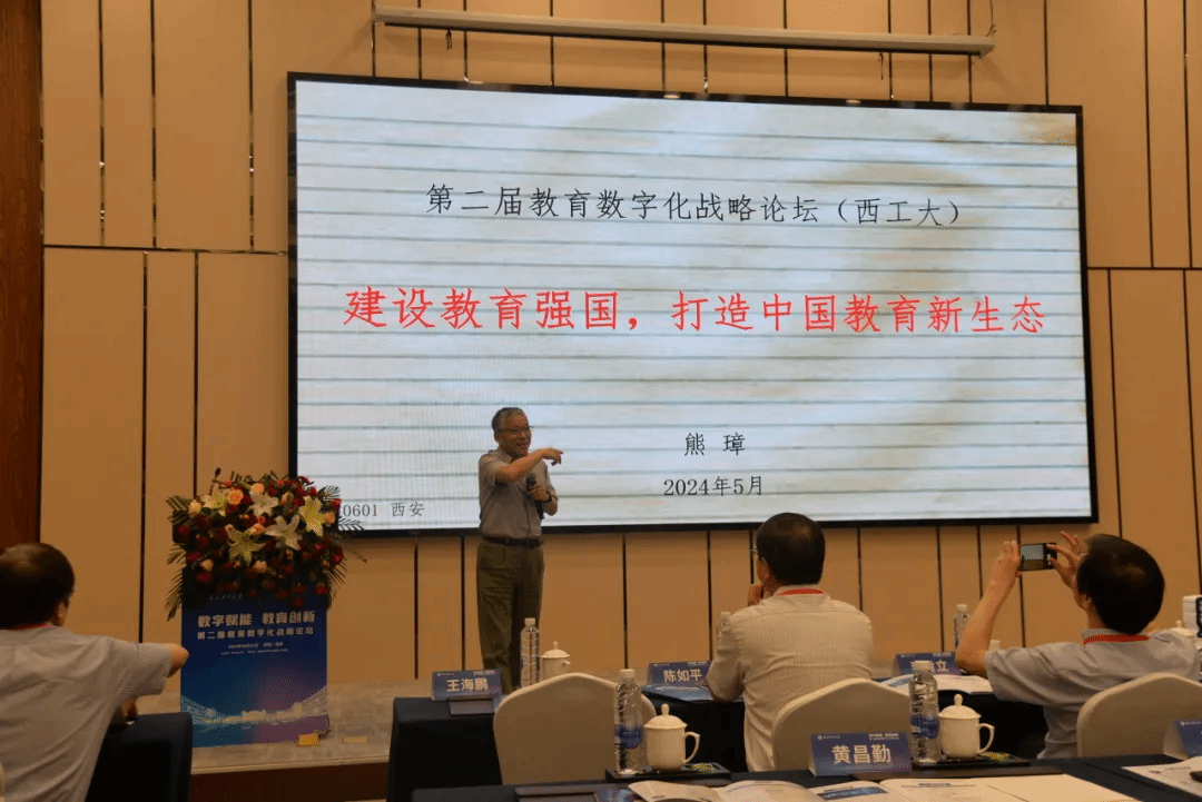 熊璋以《建设教育强国、打造中国教育新生态》为题,倡导按照习近平总书记提出的教育强国建设方向,面对人工智能的高速发展,坚持教育创新,打造教育强国的中国模式、构建中国教育新生态。
