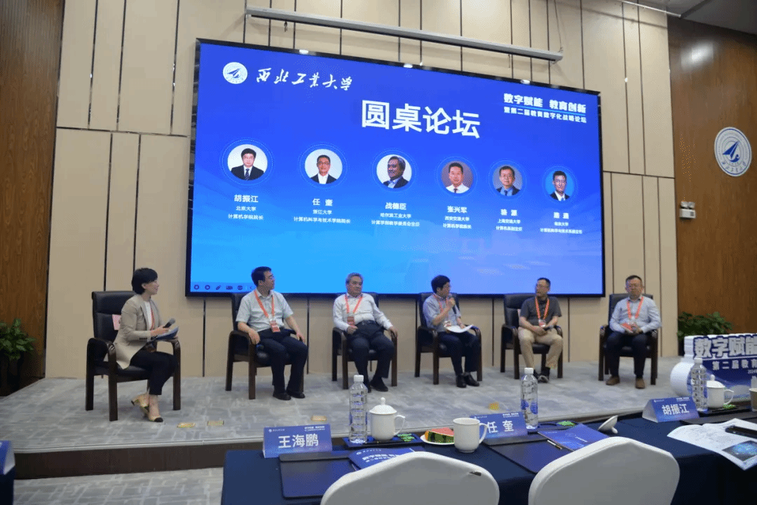 副院长唐亚哲在尚学群的主持下进行圆桌论坛,就如何落实国家教育数字化战略、加快教育创新与人工智能、大模型、元宇宙等技术的深度融合进行深入研讨,汇聚力量、形成共识,共同探索教育数字化未来发展方向。