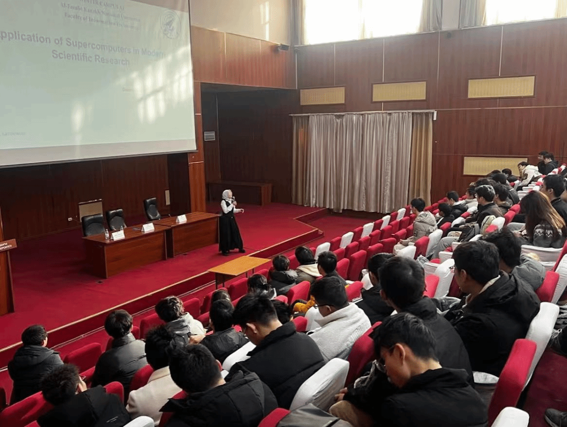 开营仪式后,本次冬令营项目正式开始。活动为期5天,行程紧凑丰富,前三天聚焦于学习人工智能知识的学习,后两天着重领略丝绸之路沿线哈萨克斯坦的独特文化。在哈国大的报告厅内,同学们全神贯注,聆听了哈方多位教授讲授人工智能、超级计算机、大数据模型等前沿领域的专业课程,讲解深入浅出,内容精彩纷呈。除了课堂学习,项目负责人Gulzat Turken老师还带领同学们开展了一系列充实且富有意义的参观活动。在哈分校的研究室,大家近距离观察科研设备与实验流程;科研成果展厅内,哈方前沿的科研成果让同学们大开眼界;校史馆中,丰富的史料与展品诉说着博彩社区