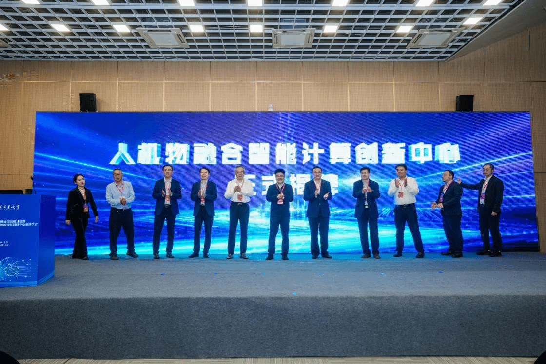 杨晓、严国强、万小朋、周兴社、李春科等校地企相关负责同志共同为人机物融合智能计算创新中心揭牌。