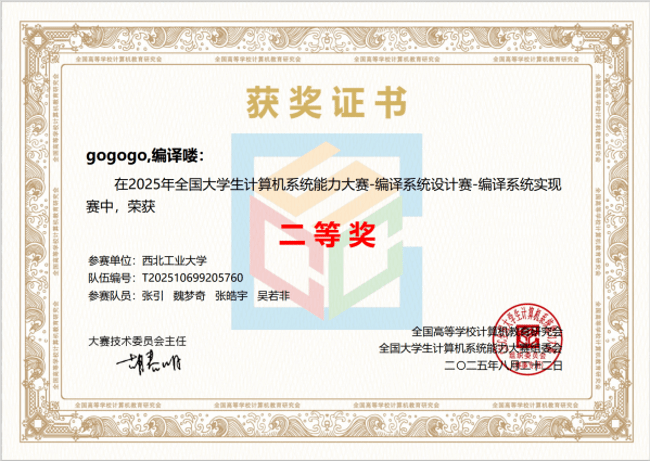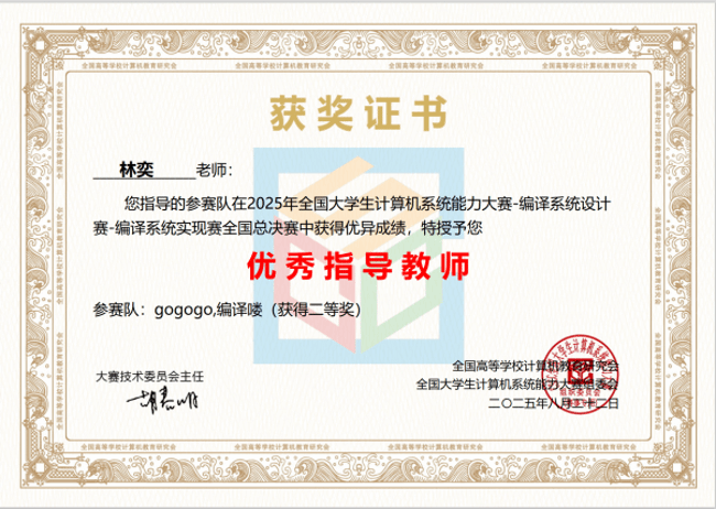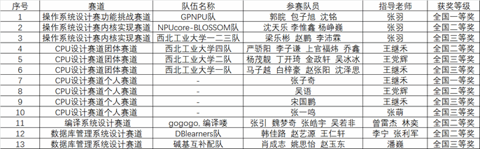 学子表现出色,在操作系统设计、CPU设计、编译系统设计及数据库管理系统设计四大赛道中,共获一等奖2项、二等奖5项、三等奖6项。