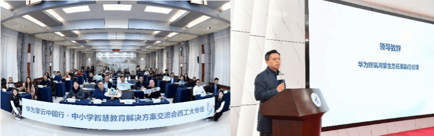 及华为终端相关负责人在致辞中指出,人工智能教育的推广是教育数字化转型的重要方向,西北工业大学将依托自身在计算机教育与人工智能研究方面的优势,携手华为共同推动“人工智能+教育”的系统落地。会议现场举行了西安(中小学)鸿蒙实训实践基地揭幕仪式,标志着我省中小学鸿蒙教育生态建设迈出实质性步伐。
