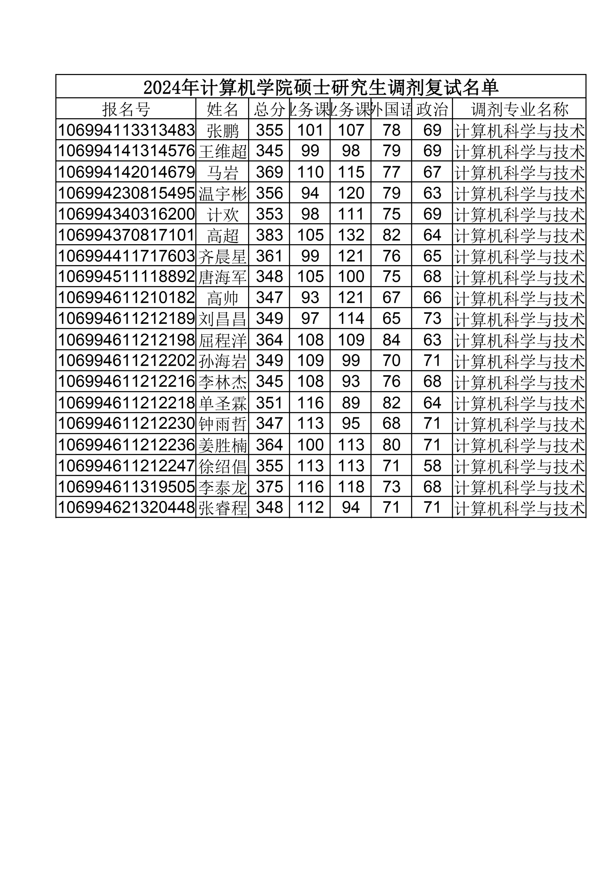 2024年博彩社区 硕士研究生调剂复试名单