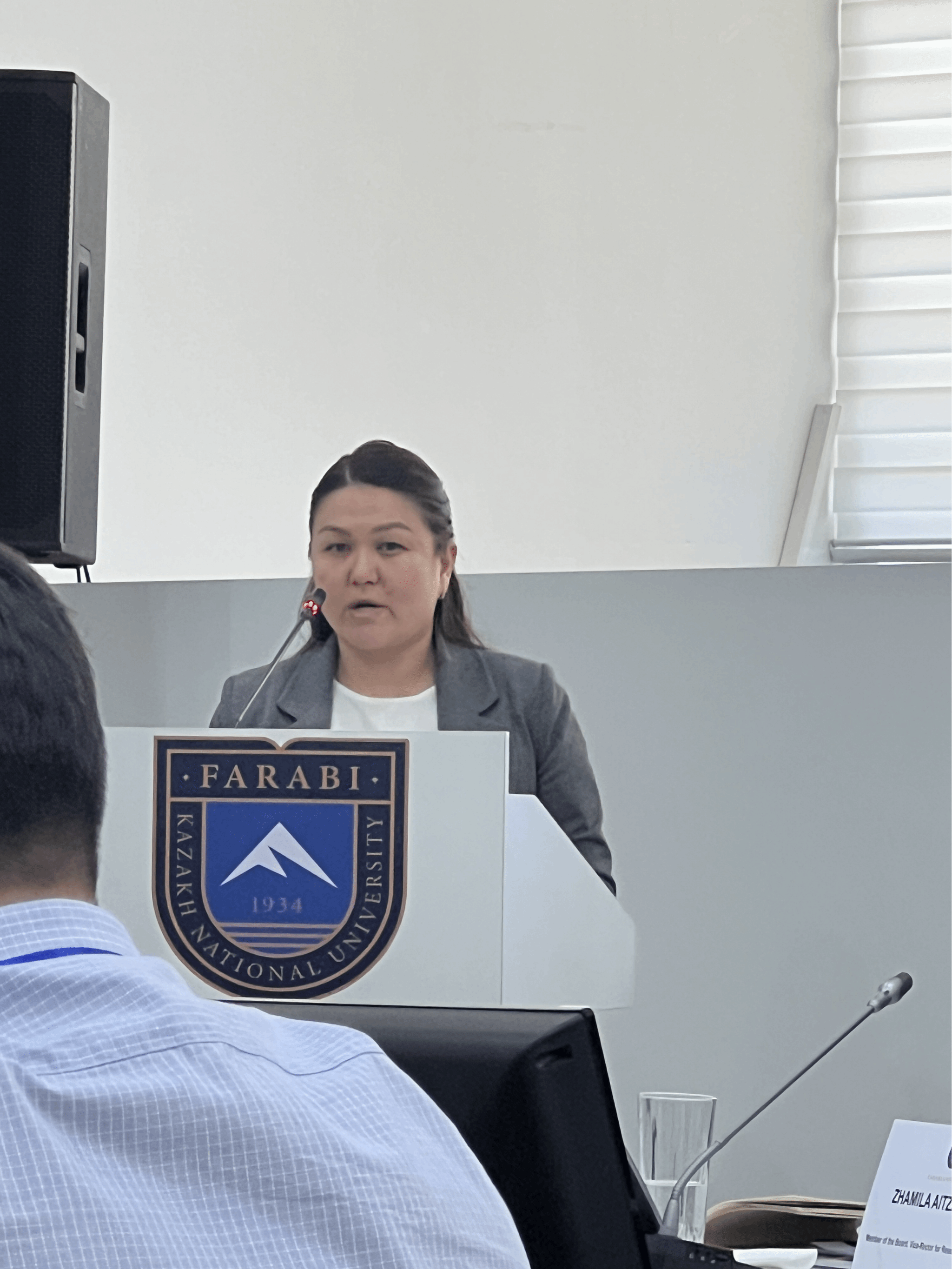 院长Olzhas Turar、副院长Zukhra Abdiakhmetova、计算机科学系主任Beimbet Daribayev、人工智能与大数据系主任Madina Mansurova等人出席。Zhamtle Aitzhanova在开场致辞中,对远道而来的西北工业大学师生代表团表示了热烈的欢迎,并对参与此次会议组织工作的所有合作与支持单位表示了由衷的感谢。大会由Olzhas Turar主持。