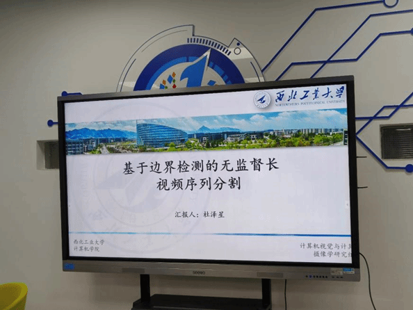 The theme of Du Zexing's report is "Unsupervised Long Video Sequence Segmentation Based on Boundary Detection". Du proposes an unsupervised behavior segmentation algorithm based on boundary detection to address the phenomenon that the spatiotemporal features of the same behavior are continuous in video sequences, while the spatiotemporal features of different behaviors are different. By using approaches such as feature smoothing, non maximum suppression, and feature clustering, the boundaries of different behaviors can be accurately defined. In addition, to meet the needs for real-time applications, the boundary detection algorithm has been extended to online mode, making it possible to define behavior boundaries in a fast and accurate manner. Experiments on commonly used behavior segmentation datasets have shown that this method can efficiently define behavior boundaries and improve segmentation accuracy.